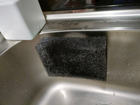 スポンジをシンクに直に置くとベトベトヌルヌル、洗剤が乾くと白くなってしまいます
